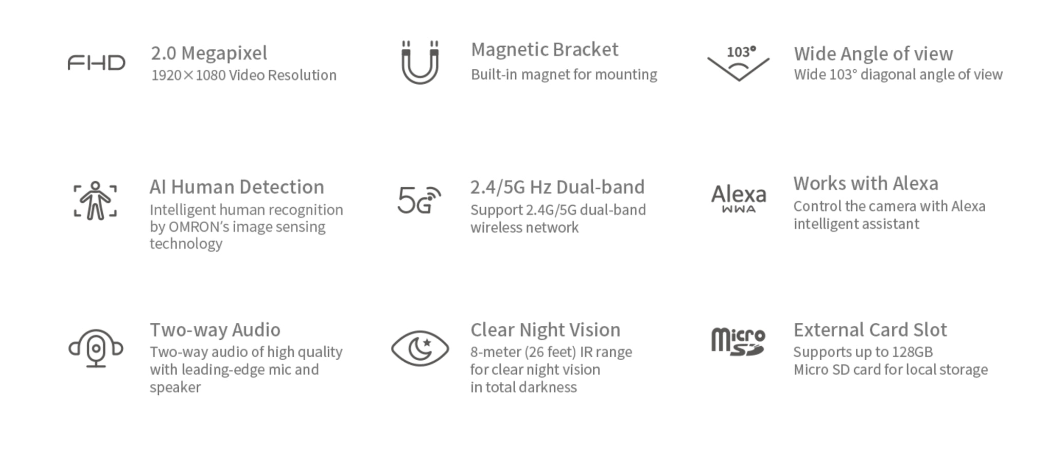 Enjoy up to 103 degrees of diagonal view or choose to re- position the view based on your security needs. Mount it anywhere with our built-in magnet.